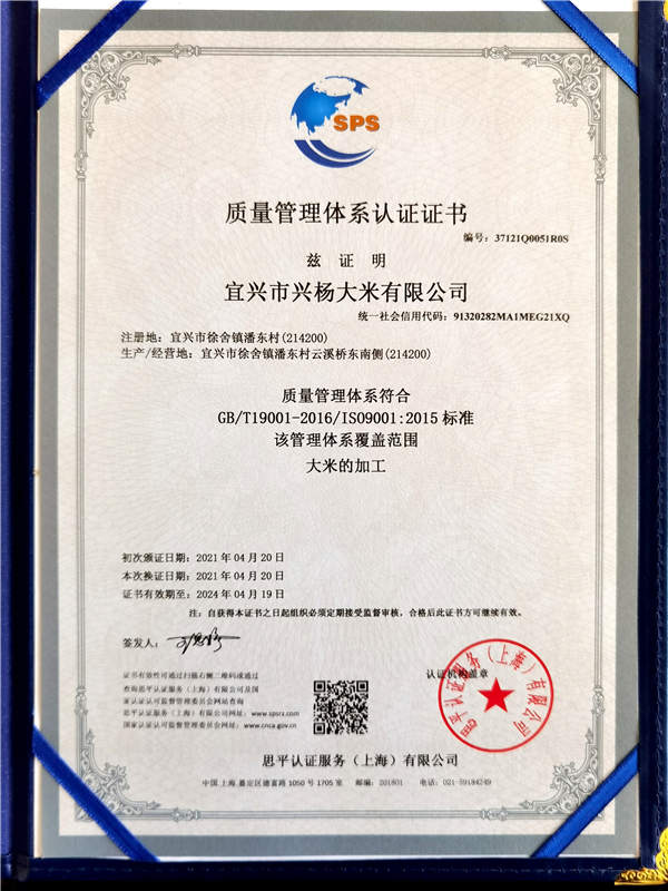 宜興市興楊大米有限公司坐落于江蘇宜興市徐舍鎮,是一家集水稻種植、收購、加工、銷售與一體的江蘇無錫市農業產業化龍頭企業。本公司多年被評為“無錫市放心糧油示范加工企業”,“江蘇省糧食經營者守法誠信A級企業”等。2020年12月獲得“無錫好米”金獎。注冊資本1200萬元,已具備年產5萬噸大米的加工能力。